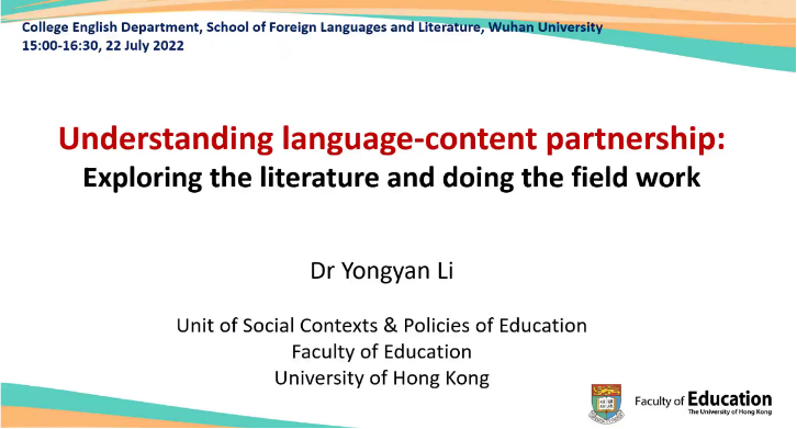 讲座伊始,李詠燕老师介绍了本次讲座的两个目标:一是帮助大学英语教师了解相关主题的英语研究文献,并思考对自己教研实践的启示;二是通过介绍自己的相关实证研究,为老师们设计研究计划提供思路。
