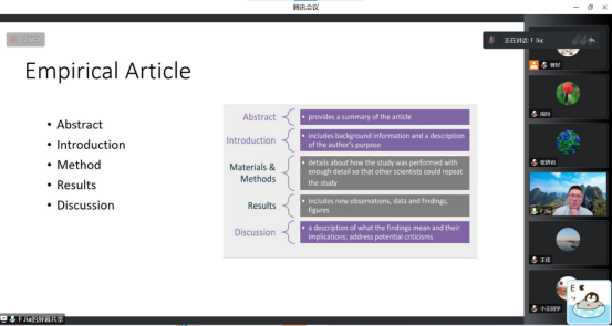 全体师生进行了主题为“国际期刊论文发表”的线上学术讲座。本次讲座由外语学院师资国际化专项支持,张妍岩副院长主持。参加讲座的有外语学院各系部老师们以及啪啪啦