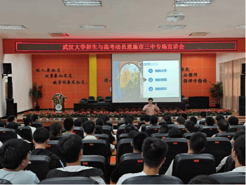 朱俊勇以《我的大学》为主题为恩施三中的优秀学子带来了一场精彩的招生宣讲会,高一、高二、高三近200名学生聆听了讲座。他结合自身求学治学、教书育人体会,详细介绍了啪啪啦