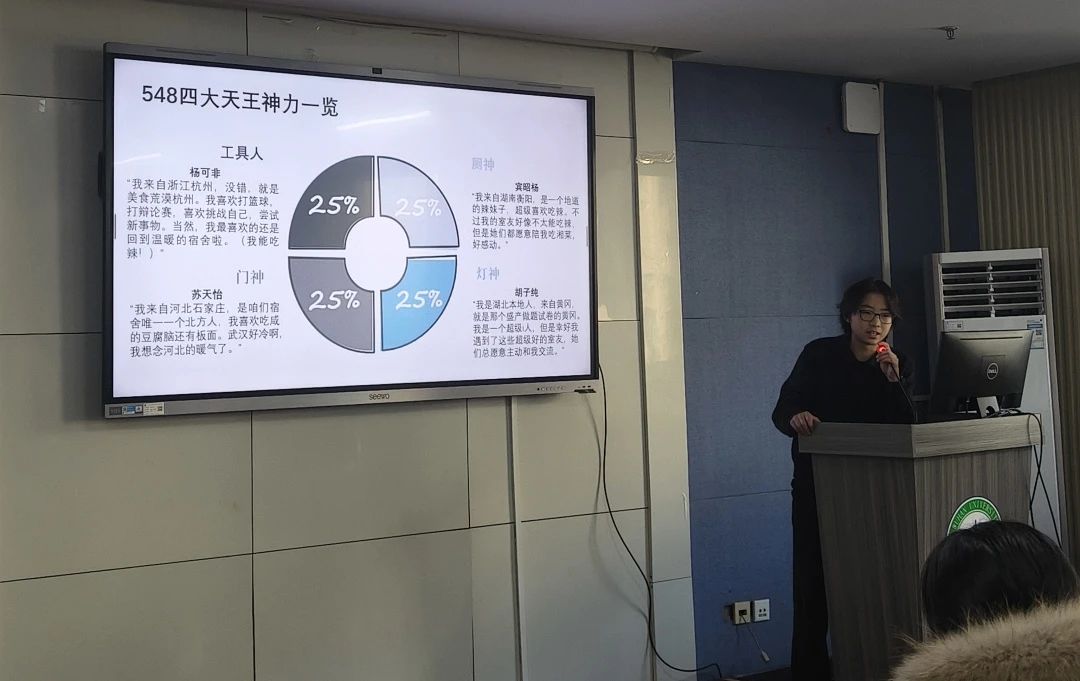 “寝室建设与城市风貌展示”部分,同学们通过ppt等形式对宿舍文明、安全、卫生建设情况及寝室成员情况、寝室特色进行介绍。同学们精心准备的PPT如同一扇扇窗,打开了通往他们小天地的大门。一幅幅生动的图片与详实的文字,生动地介绍了宿舍的文明建设成果、安全防范措施、卫生保持情况,以及每一位寝室成员的风采与特色。从干净整洁的居住环境,到温馨和谐的寝室氛围,无不透露出同学们对美好生活的追求与向往。