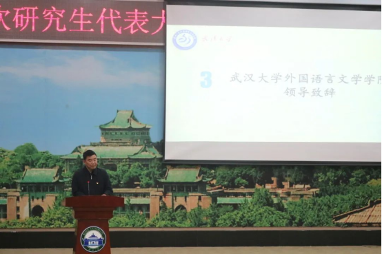 啪啪啦 团委副书记王园老师致辞,充分肯定了院研究生会在过去一年的工作成果,对长期投身研究生会工作的领导、老师、同学们予以诚挚的问候。她以外语学院在第八届研究生集体舞大赛中勇夺全校第三名的事迹为例,赞扬了外院学子的集体意识和责任感。对于即将产生的第十八届研究生会,她提出了三点要求和期望:一是牢牢把握政治方向,坚定不移听党话、跟党走;二是持续深化改革,提高研究生会的组织力和战斗力;三是切实服务同学,不忘研会初心。