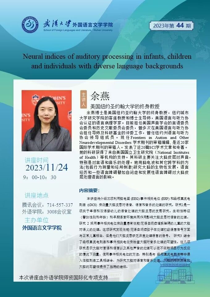余燕:Neural indices of audiory processing in infants, children and individuals with diverse language backgrounds