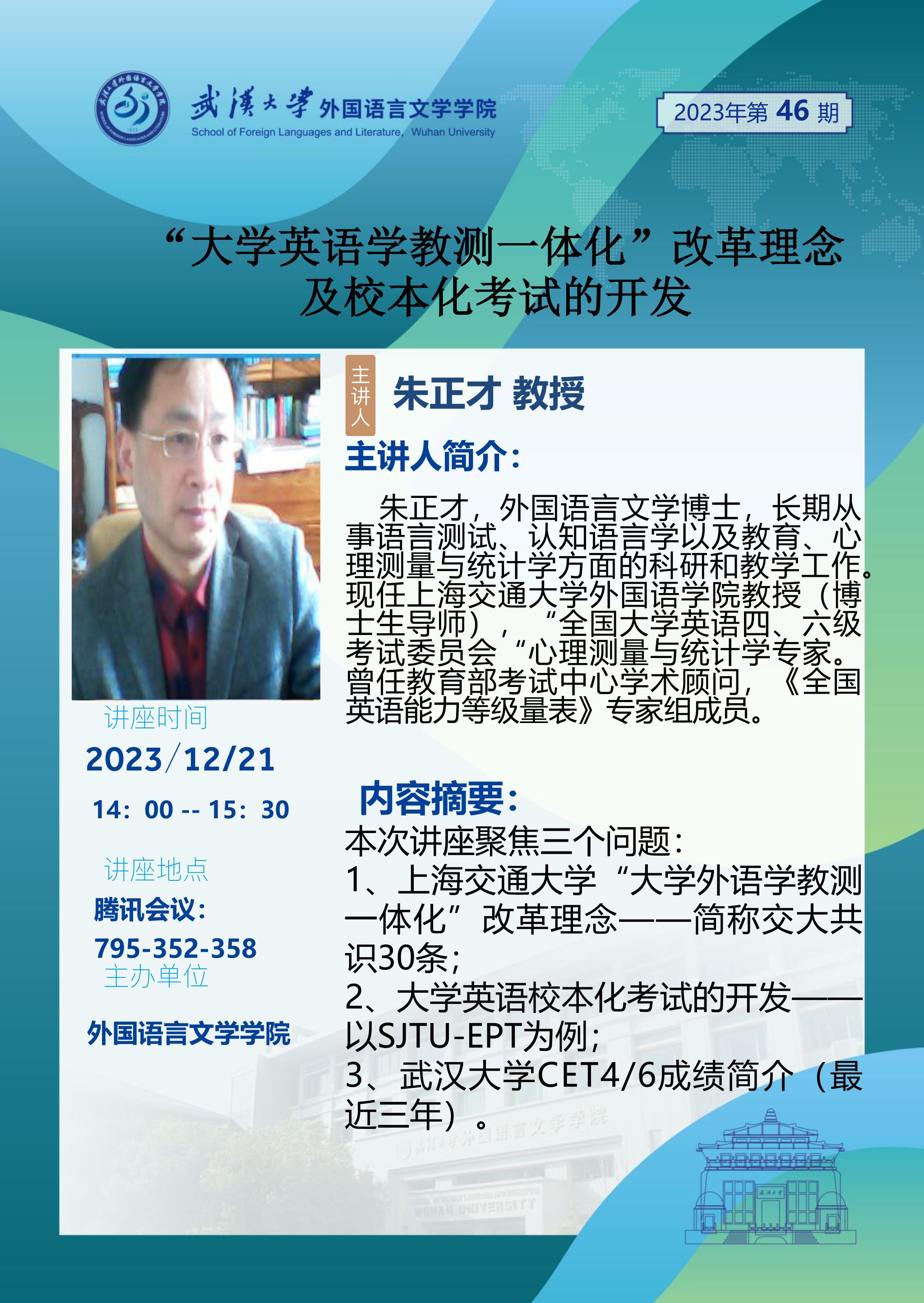 朱正才:“大学英语学教测一体化”改革理念及校本化考试的开发