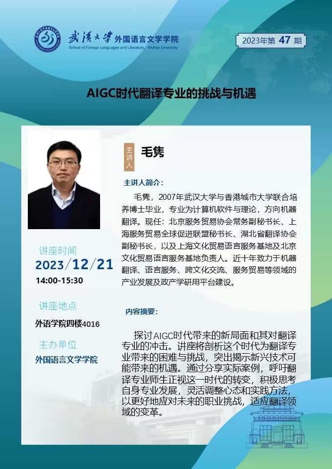 毛隽:AIGC时代翻译专业的挑战与机遇