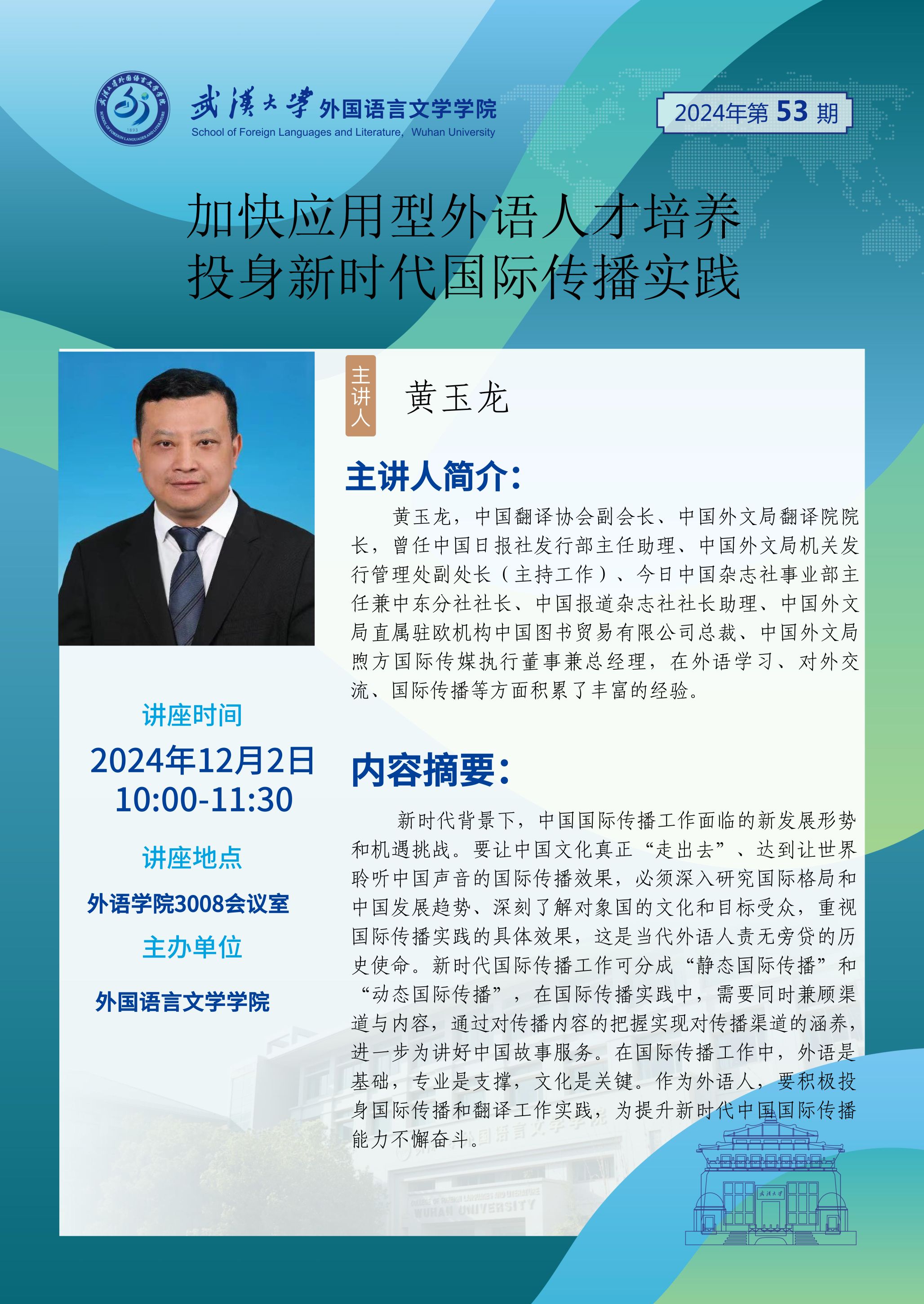 黄玉龙:加快应用型外语人才培养投身新时代国际传播实战