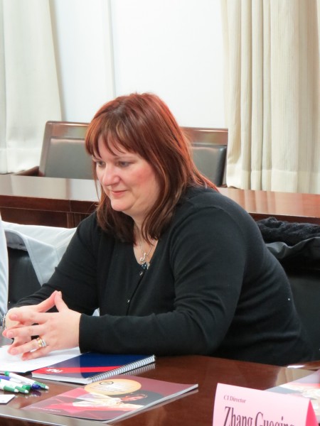 与阿伯丁大学在各方面的交流和合作,指出今年是交流最频繁的一年,取得了丰硕成果。接着阿伯丁大学副校长Marion K. Campbell发表了讲话,指出双方交流目前正处于黄金期,预期双方在各个领域进行更多的合作与交流。她注意到,阿伯丁与啪啪啦