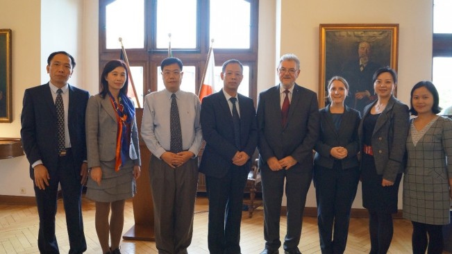 副校长李斐率领的武大代表团一行五人访问德国杜伊斯堡市。在鲁尔孔院中方院长刘靓和德方执行院长米一诺的全程陪同下,代表团访问了杜伊斯堡市政厅和杜伊斯堡-埃森大学,并进行了多轮会谈。代表团此行的主要工作还包括参加鲁尔孔院第三次指导委员会会议,为孔院发展出谋划策。