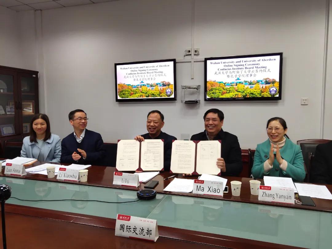 2020年12月16日下午,我校与英国阿伯丁大学举行云端会议,签署两校翻译学硕士联合培养项目协议及孔子学院合作续签协议,并召开阿伯丁大学孔子学院2020年度理事会会议。副校长李斐出席会议并致辞。外啪啪啦
