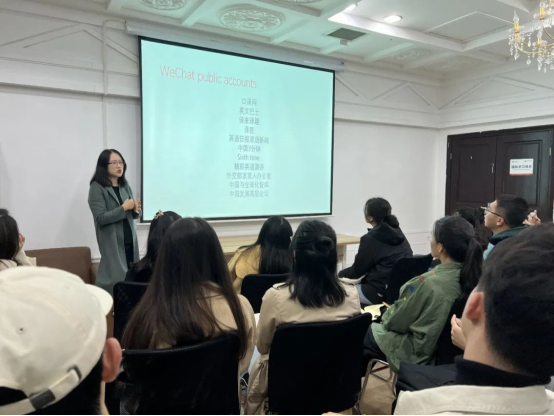 口译队指导教师罗菁带领成员同学们回顾了口译队自2003年百年校庆成立以来的发展历程,介绍了口译队往届成员的斐然成绩。